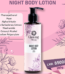 Our Night Body Lotion is crafted to hydrate, soften, and rejuvenate your skin while you rest. Formulated with skin-loving ingredients, it helps improve skin texture and elasticity, leaving your body feeling smooth and refreshed by morning. Ideal for dry or tired skin in need of extra care.